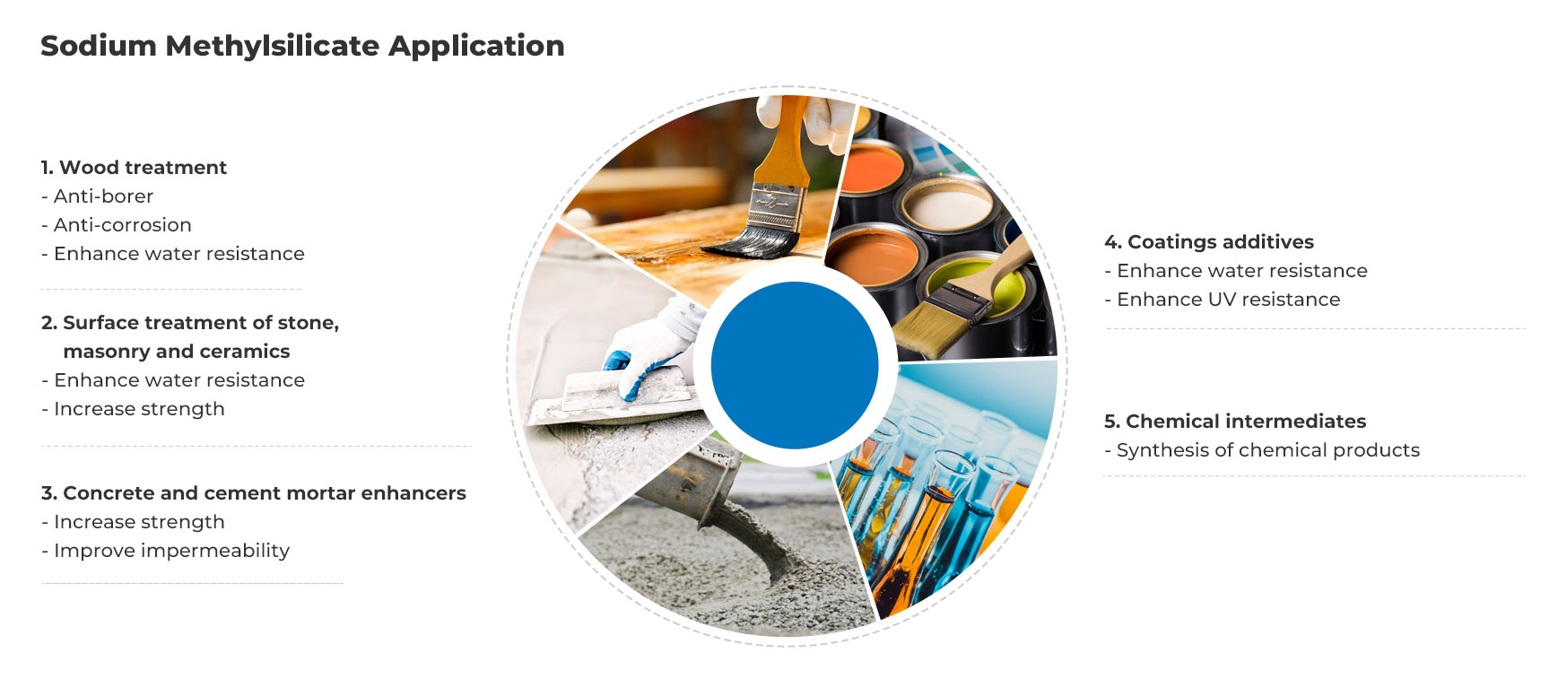 Vďaka týmto vynikajúcim vlastnostiam má metylsilikát sodný široké uplatnenie v mnohých oblastiach. V oblasti stavebníctva ho možno použiť na hydroizoláciu vonkajších stien, striech, pivníc a iných častí budov, účinne bráni zatekaniu dažďovej vody a chráni stavebnú konštrukciu. Ak si vezmeme ako príklad výškovú obytnú budovu, po použití metylkremičitanu sodného na hydroizoláciu vonkajších stien po rokoch silného dažďa na stene nezatekalo a počet sťažností obyvateľov sa výrazne znížil. Pri obnove starých obytných štvrtí bol na hydroizoláciu strechy použitý metylsilikát sodný, čím sa výrazne predĺžila životnosť strechy.
